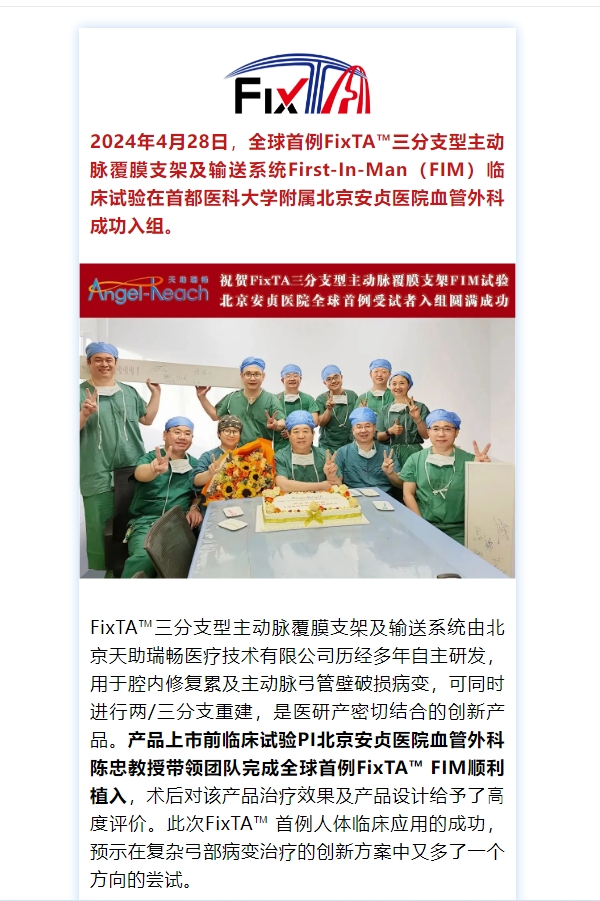 首先祝賀FixTA™三分支型主動脈覆膜支架及輸送系統(tǒng)FIM臨床試驗(yàn)全球首例入組成功。