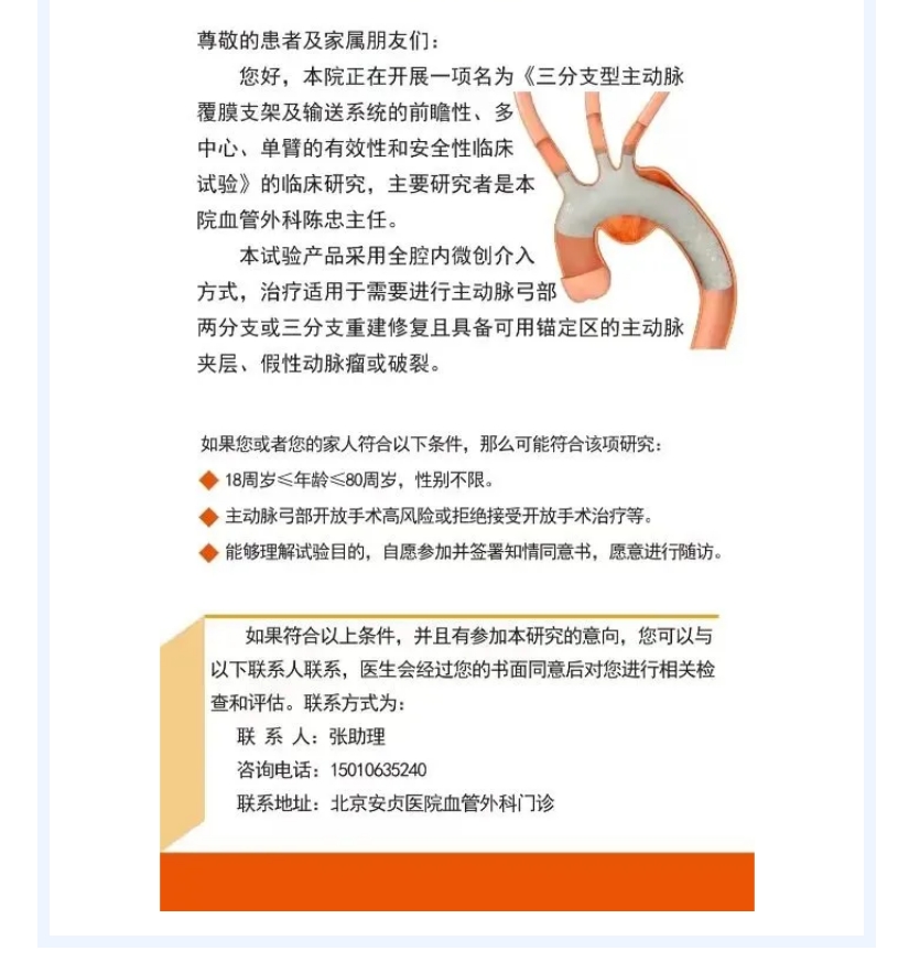 近期,由北京天助瑞暢醫(yī)療自主研發(fā)且具有完全自主知識產(chǎn)權(quán)的三分支型主動脈覆膜支架及輸送系統(tǒng)FIM臨床試驗(yàn),由首都醫(yī)科大學(xué)附屬北京安貞醫(yī)院成功完成全球首例受試者入組,奧泰康負(fù)責(zé)臨床試驗(yàn)服務(wù)。