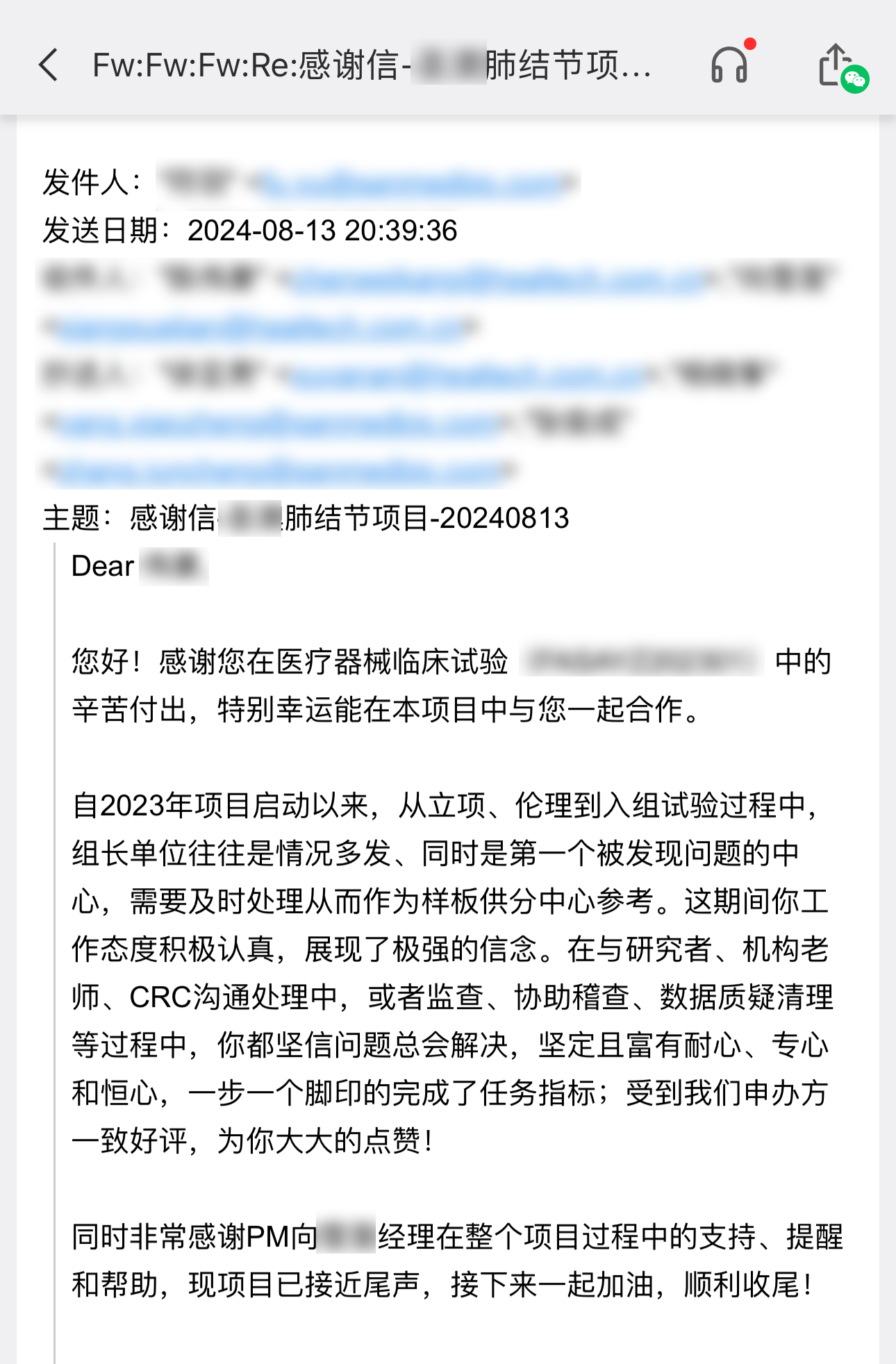 感恩有你,未來可期。在感恩節來臨之際,我們對合作伙伴的理解和支持表示感激,也對臨床項目組成員表示感恩,是大家每個人的共同努力使得項目得以順利開展,愿我們的合作之旅,如同星辰大海,浩瀚無垠,充滿無限可能與希望。讓我們帶著這份感恩的心,繼續前行,共創更加輝煌的明天!