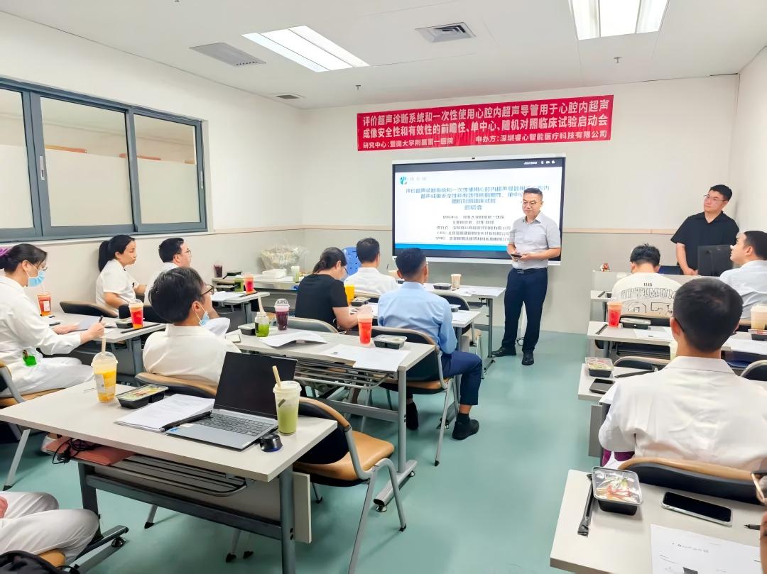 睿心醫療心腔內超聲診斷系統和一次性使用心腔內超聲導管近期正式啟動上市前臨床試驗,并在暨南大學附屬第一醫院舉辦了啟動會。目前產品已成功完成全國首例上市前臨床應用,產品效果獲得臨床專家的高度認可。暨南大學附屬第一醫院郭軍教授、睿心醫療聯合創始人兼首席技術官馬駿出席會議,現場匯集眾多心內科、超聲科專家,共同探討產品功能優勢,及其在臨床應用的方法與價值。